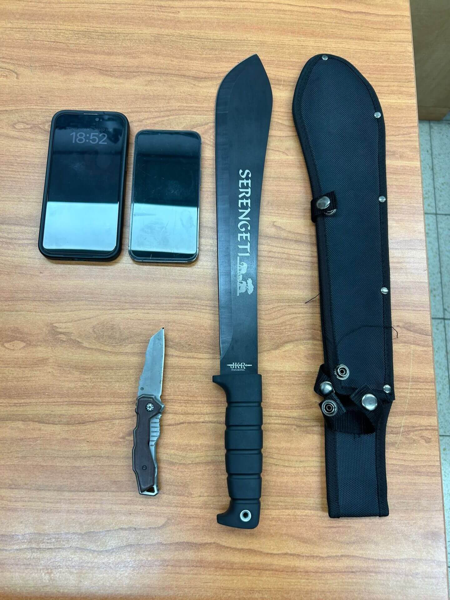 במהלך החיפוש נתפסה בכיסא של הקטנוע מצ'טה גדולה ובחיפוש על הרוכב השני נתפסה עליו סכין מתקפלת.החשודים, תושבי בת ים ותל אביב, בשנות ה20, נעצרו והועברו לחקירה במשטרת יפו.