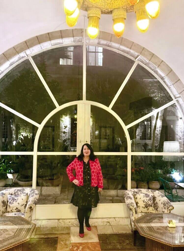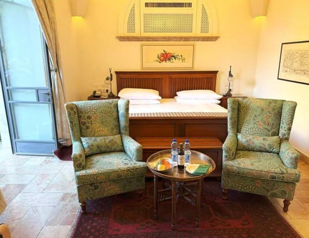 המלון נמצא על קו התפר, ממש על תוואי הרכבת הקלה, מול שכונת מאה שערים. המבנה המקורי האדריכלי של המלון מרהיב, הקשתות האוריינטליות, המזרקות העתיקות, התקרות הגבוהות והמצוירות, הגנים המטופחים. אי אפשר שלא להתפעל ולהתלהב. אהבתי את רצפות האבן הירושלמית העתיקות, את פריטי הריהוט העתיקים, השטיחים הפרסיים, פריטי האמנות, יצירות הפסיפס היפהפיות, את האח הבוערת, את הצילומים בשחור לבן שבהם ניתן לראות את המשפחות המייסדות וגם את האורחים המפורסמים שהתארחו כאן. את כל הפריטים הקטנים שהפכו את השהייה במלון לחוויית אירוח מיוחדת במינה.