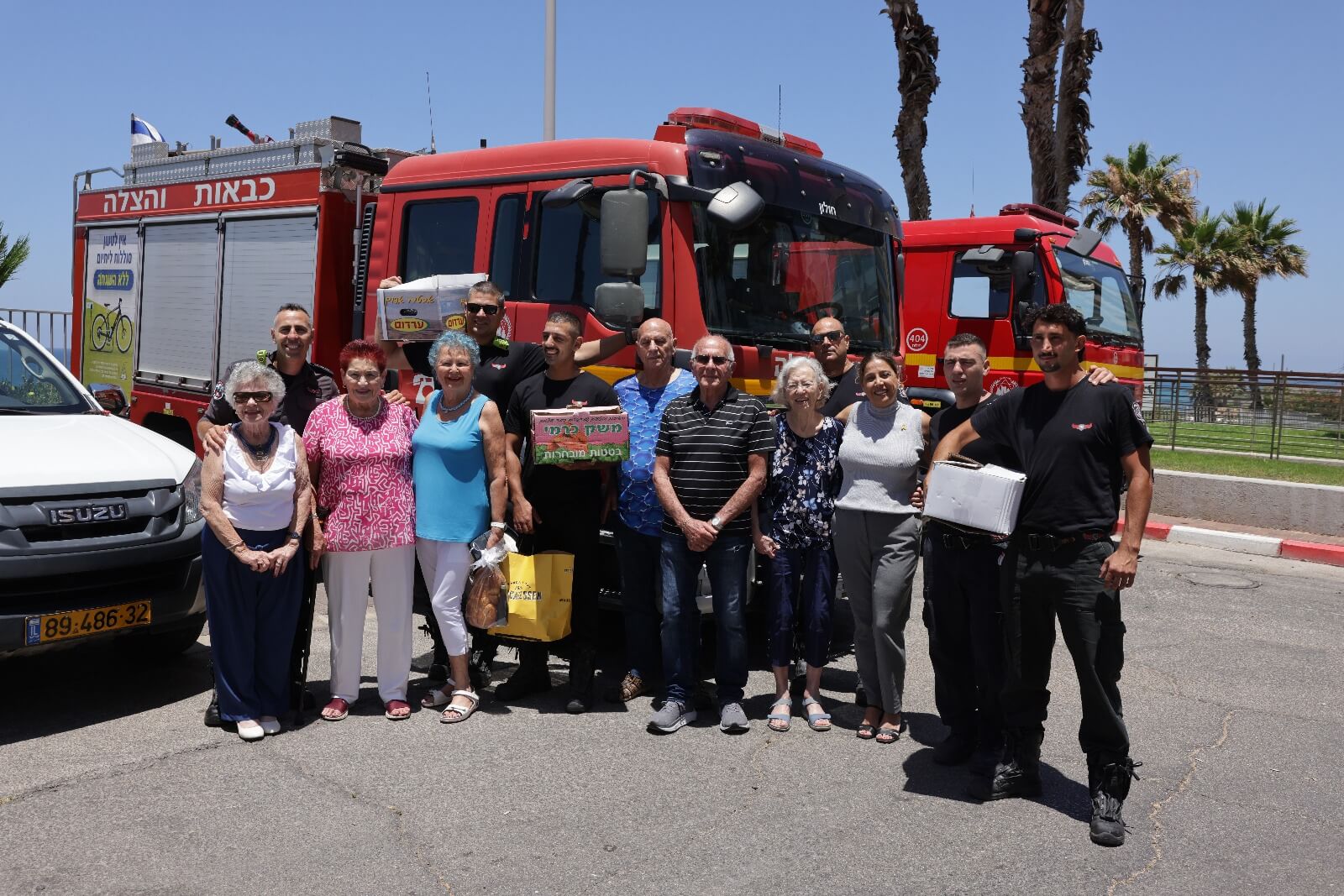כשהכבאית עצרה מול מגדלי הים התיכון, הדיירים כבר חיכו נרגשים, מוכנים לקבל את פני האורחים שליבם היהנתון להם כל השבוע. לוחמי האש הגיעו עייפים ורעבים, לבושים במדים, והתקבלו בחיבוק חם, באוכל מכל הלב – ובשיר. הדיירים פצחו יחד בשירת "אלף כבאים", ועיניהם ברקו מהתרגשות.